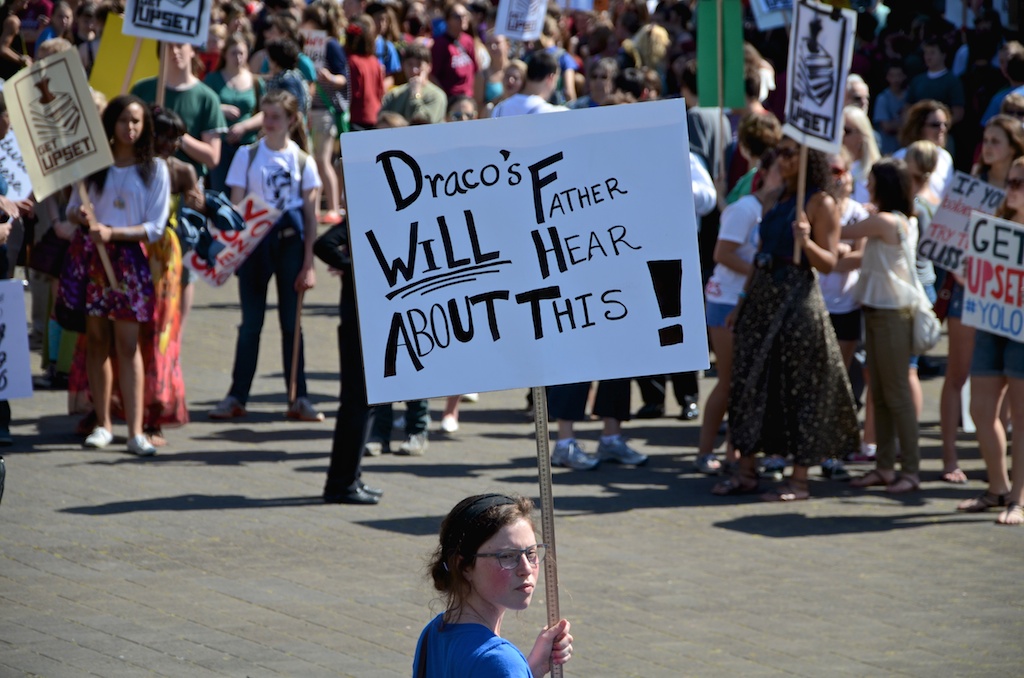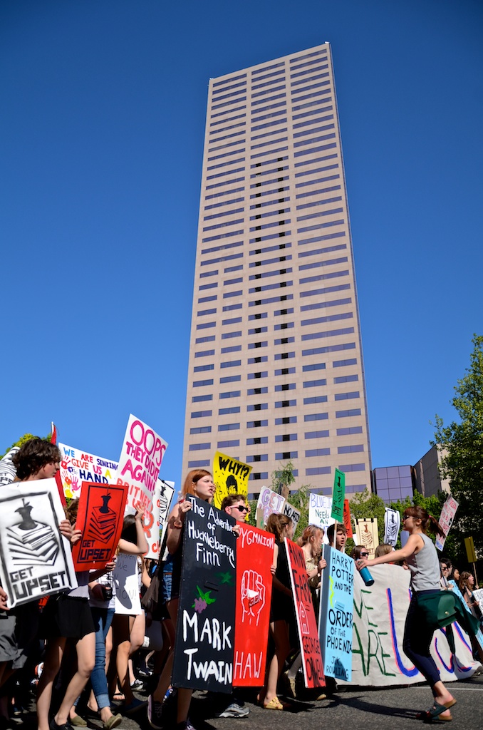 Over 1000 High School students marched through Portland, OR to protest ongoing budget cuts, teacher lay-offs, school closures, and reductions in programs.