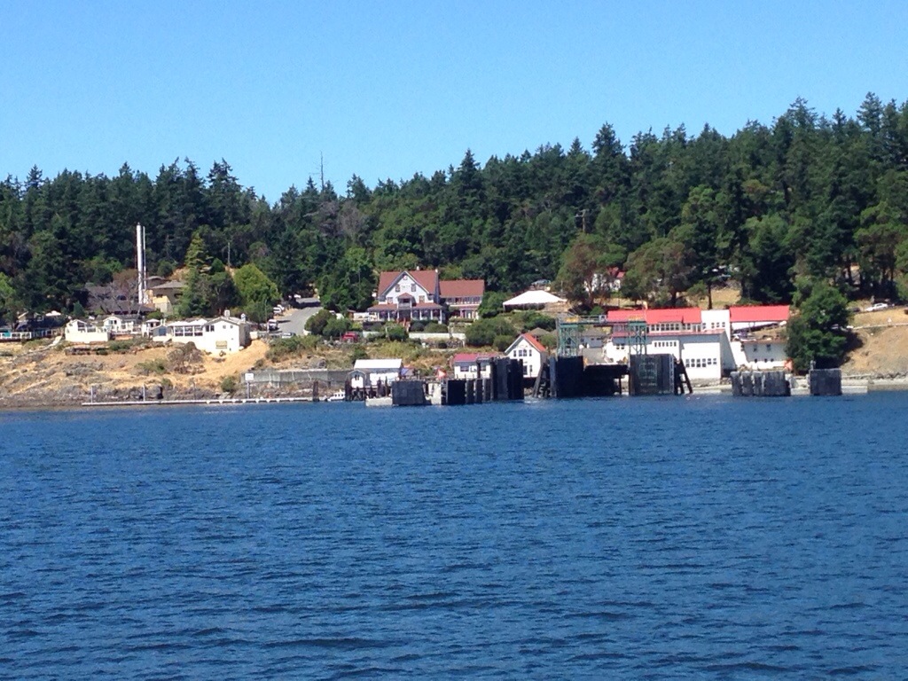 Today we cycled a short 4 miles to the ferry dock at Lopez Island, ate a delicious burger and deep fried, sugar coated, dough bits, took the ferry to Orcas Island, and then biked the 10, hilly miles to West Beach Resort just outside of Eastsound. The day was hot, but beautiful and we are spending the evening relaxing on the waterfront deck with a cold beverage!