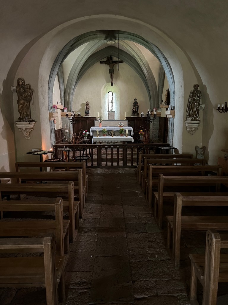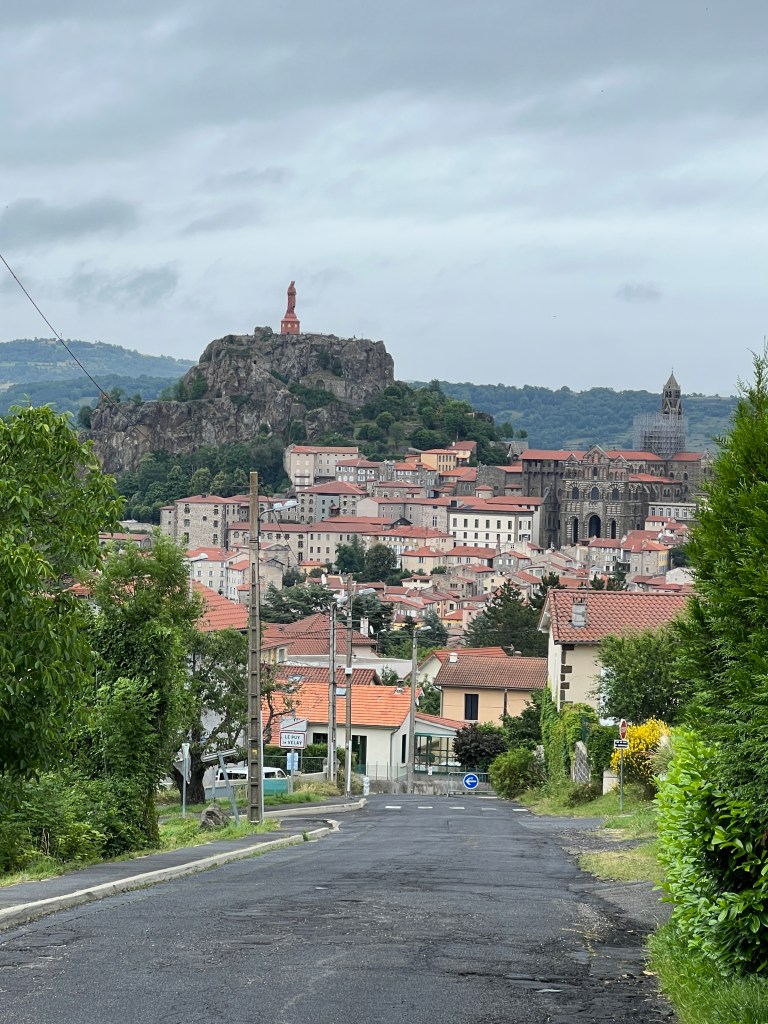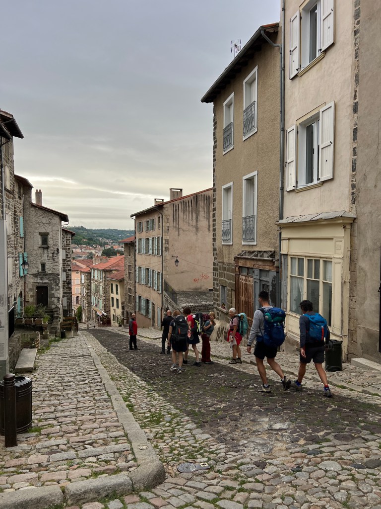 Le Puy was stunning; a town built on ancient volcanic hills and spires. The Via Podiensis begins at the Cathedral, which sits atop the town and is accessed by walking up winding cobblestone streets and multiple sets of staircases. There is a daily morning mass for pilgrims that begins at 7am and includes a blessing for the journey ahead. I am not Catholic, but enjoyed the ritual and community aspect of the gathering. At the end of mass large metal gates in the floor open up and reveal a staircase leading out of the church to begin the walk. It’s dramatic and symbolic and an exciting start to the walk.