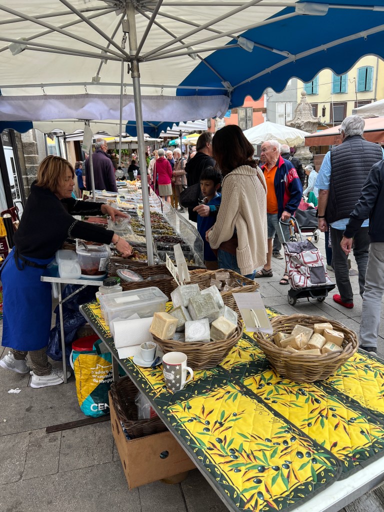 We had the privilege of starting our walk on market day, which was in the small town square filled with vendors of all kinds. We bought some trail mix and dried fruit, but the bread and cheese and roast chicken and endless rows of fruits and vegetables looked delicious!
