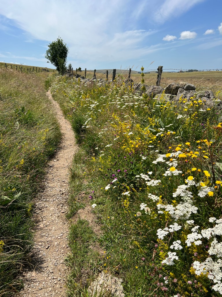 ~15 miles, across the Aubrac Plateau, rolling hills and very little shade
