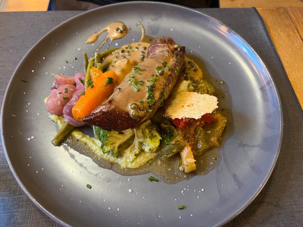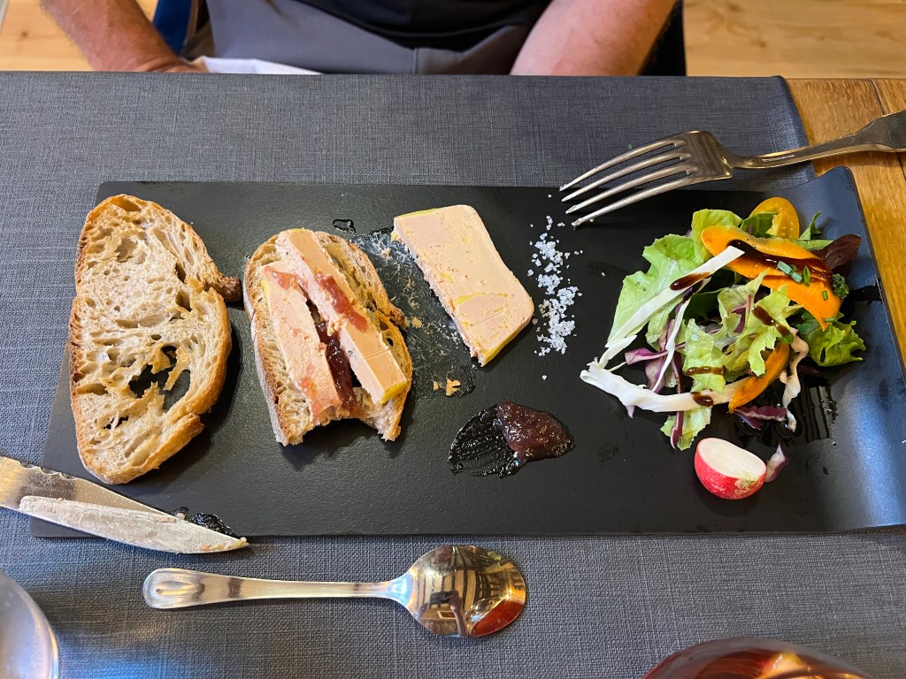 Dinner was incredible, as usual. We went out to eat at a very nice restaurant, La Puce à l’Oreille. August had duck bread and I ordered the fish of the day. They played Dolly Parton and we drank local wine. It was a perfect evening.