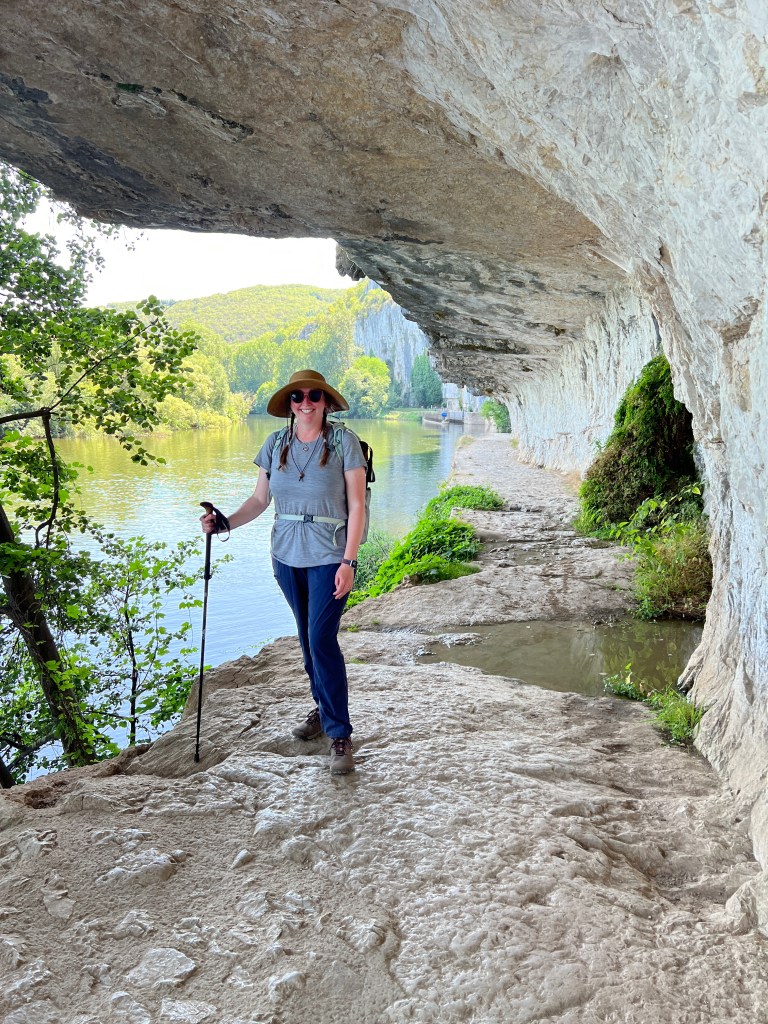 After leaving the museum we walked a challenging 7 more miles to Saint-Cirq-Lapopie, including climbing up and crossing an abandoned railroad bridge and walking the Chemin de Halage, a towpath that was carved into the limestone cliffs and then transformed into a canvass of stone art. The final climb to Saint-Cirq-Lapopie was 300 feet straight up the hillside, where we arrived dripping in sweat and out of breath to our incredible Chambre d’Hôte for the next two days. Saint-Cirq-Lapopie was voted Frances most beautiful village (of all the most beautiful villages) and was truly gorgeous. My favorite part is that cars are not allowed into the village, as the streets are too narrow, which always make a place more peaceful and welcoming. The village was filled with art and artists, which I will talk about more in tomorrow’s “rest day” post.
