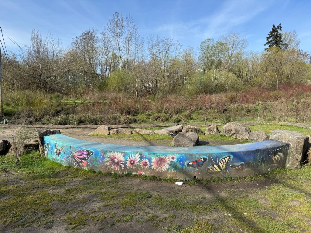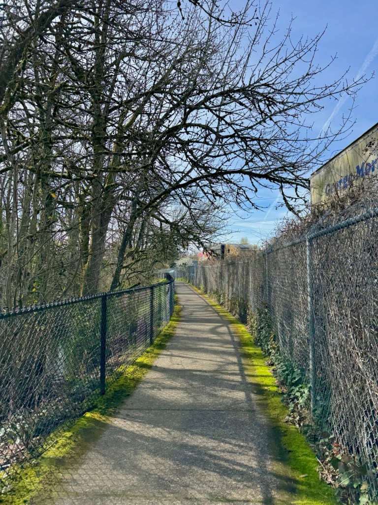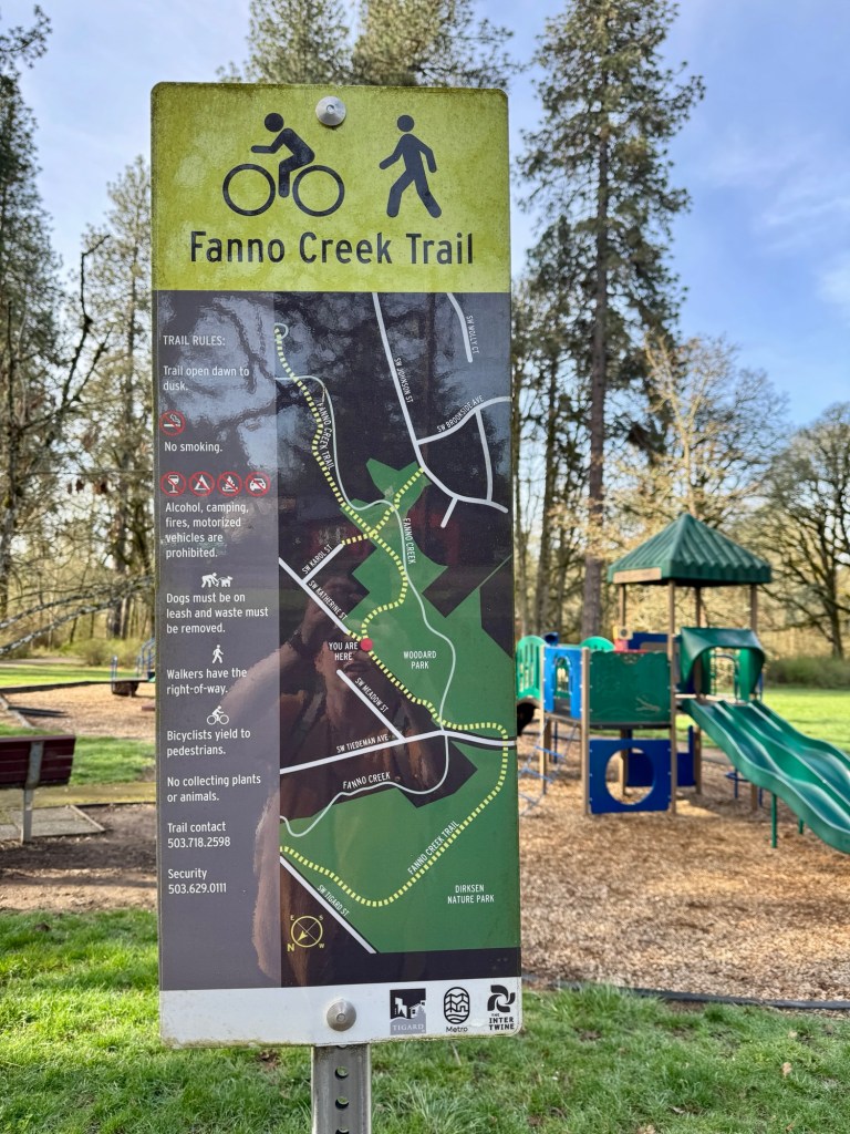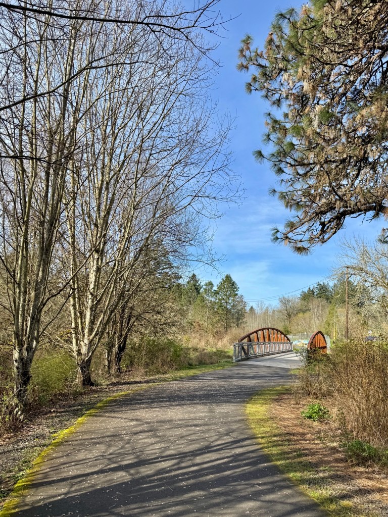 Today I walked a short 1.8 miles from Dirksen Nature Park to the Tigard Public Library on the newly expanded Fanno Creek Trail. It was an unseasonably warm day, with highs reaching the upper 70s by early afternoon.